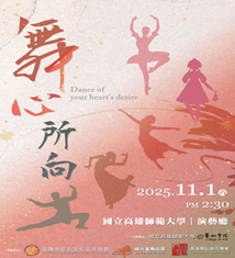 「舞心所向」舞蹈活動 時間:114/11/1(六) 由表演藝術碩士學位學程「舞台肢體訓練研究」課程之兼任助理教授級專技教師林泯辰,帶領本院表藝班一年級學生和高雄市高雄舞蹈創作舞集舞團協力演出。...